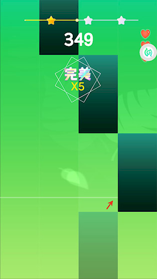 2、靠近判定线点击黑块即可达成完美评分。