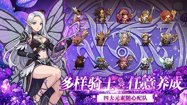 4、 骑士养成:通过晋升、觉醒和装备等方式培养40多位像素骑士,组建专属队伍。