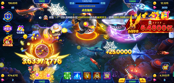 2、千炮系统:支持高达千炮甚至万炮的火力输出,让捕鱼体验更加刺激爽快。