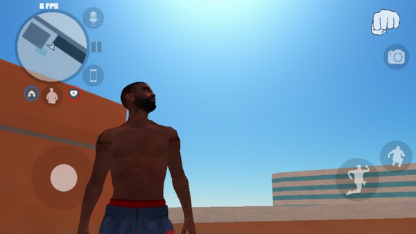 3、现在可以熟悉一下操作,拖动左边摇杆可以控制角色,右边有跑有蹲的按钮。