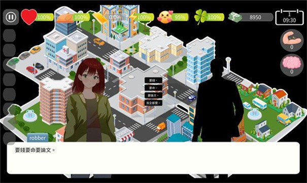 4、正式开始游玩,玩家的任务就是一百天内完成论文并生存下来。
