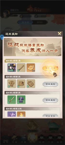 通过通关关卡、完成日常任务、挂机离线收益等方式,获取升级材料、装备和货币。