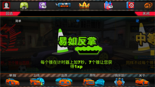 4、选择游戏难度,体验全新的漂移爽快感;