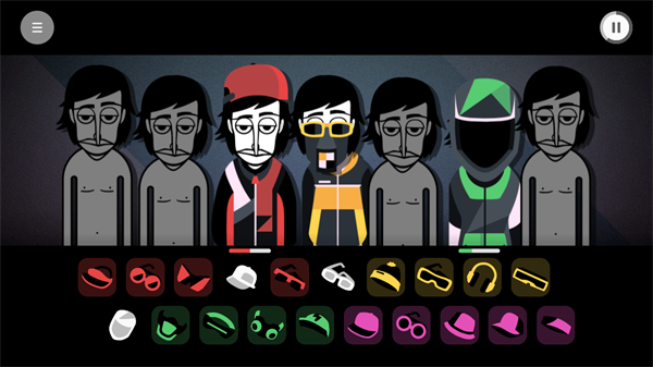 屏幕上一排排颜色各异的小装饰,每个都对应一段独立的声音——鼓点、人声、电音、特效……随便抓起一个,拖到人物身上,那段声音就会循环加入当前的混音。红色可能是低沉的贝斯,黄色或许是清脆的镲片,蓝色说不定是一句嘻哈人声。你不需要懂五线谱,只需要相信自己的耳朵。