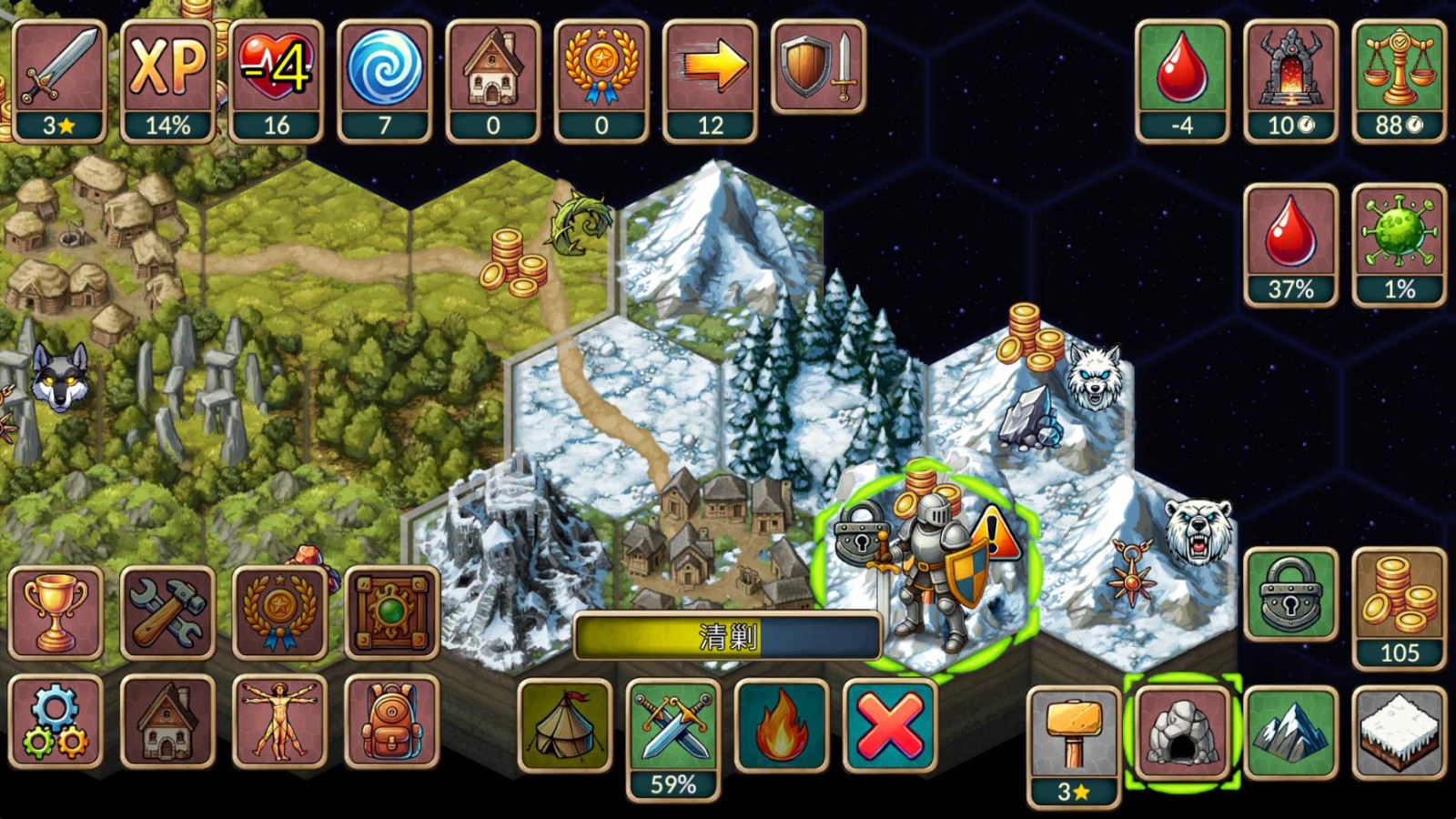 4、当地块上有魔物存在是玩家需要击败魔物才可以获得奖励,点击带有剑的按钮来讨伐魔物。