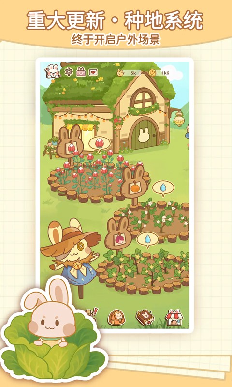 5、 家园梦想:每个兔兔都渴望拥有一个舒适的家,玩家通过收集家具与装饰,逐步将它们心中的梦想小屋变为现实。
