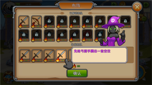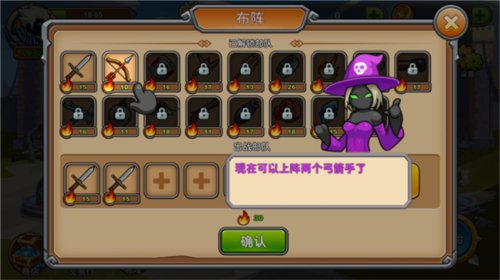 3、再点击所需要的兵种添加到出战部队中,点击确认即可完成布阵。