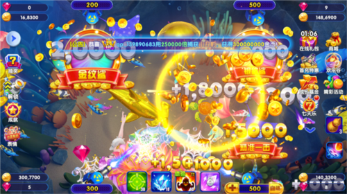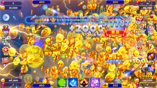 1、使用方法:点击召唤可以在游戏中召唤一条强力的奖金鱼,同时,每当我们击杀奖金鱼后,会在奖金池内积揽一笔金额,击杀的奖金鱼越多,奖池的金额也就越多,等级也就越高,我们可以享受到不用等级的抽奖活动,有可能抽中红包或者钻石、金币等奖品。