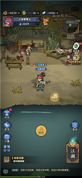5、选择右侧的“江湖”入口即可挑战历练关卡,通关后能收获大量成长所需资源。