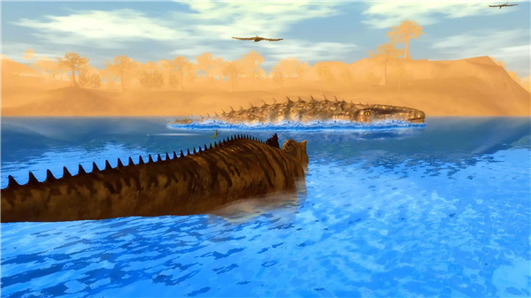 通过捕食恐龙、补充水分维持自身健康与精力值,在广袤的游戏世界中自由探索,与其他恐龙展开战斗,不断提升自身实力。