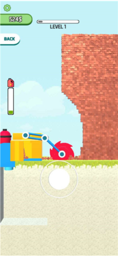 3、挖掘的砖块越多,获取的金币就越多,金币可用来升级铲斗的长度、力度,并增加挖机油量,助力更高效地破拆墙壁;当挖机升级到一定强度、拆完整面墙壁后,可进入下一关卡。