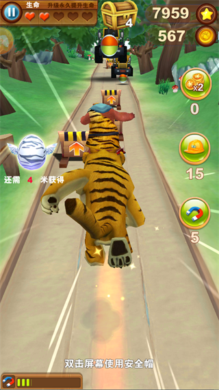 丛林赛道是最初始的赛道,在游戏中丛林赛道的难度并不算太高,没有太多的障碍物需要躲避,也没有太复杂的地形设置,需要注意的就是丛林跑道上有不少可以移动的障碍物,如奔跑的老虎,开动的汽车以及滚动的巨木,这些移动的障碍物都是比较困难的。