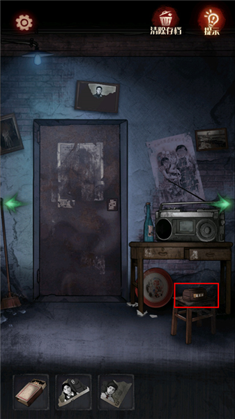 11、向左回到铁门门口,点击凳子上的盒子,输入583打开盒子,获得【碎照片2】。
