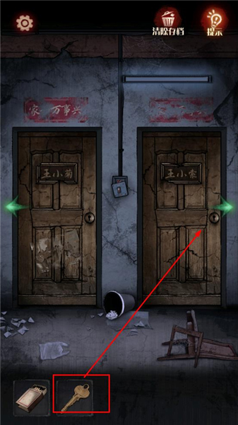 14、向右来到卧室门口,使用【卧房钥匙】打开右边王小索的门,进去,第一章结束。