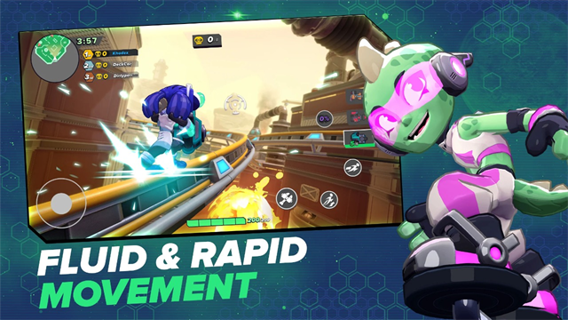 这不是那种蹲在掩体后面探头对射的游戏。你的双脚几乎不会在同一块地面上停留超过两秒——冲刺拉近距离,二段跳翻越障碍,滑行穿过狭小缝隙,跑墙从侧面绕开正面火力。动作之间没有停顿,移动本身就像一场精心编排的舞蹈。每一个按键都在让角色做出下一个花哨的动作,每一秒都在挑战操作的极限。