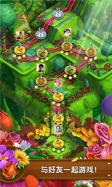 具备完善的社交体系,支持好友送花、互助闯关、全球排行榜等互动功能。