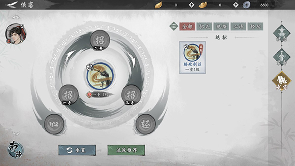 6、轻功:建议选择游四方来以提高基础身法和攻击属性。