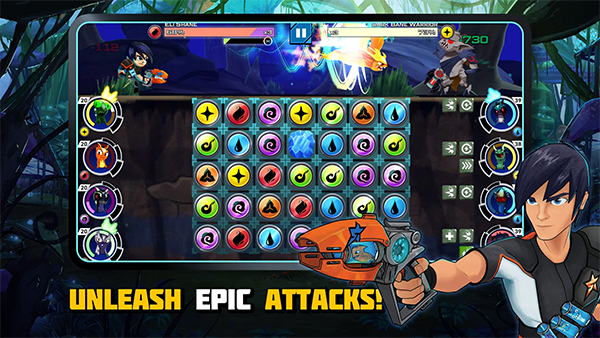 1、 三消充能:通过连接三个或更多相同颜色的方块来积累能量,决定发射哪种属性的精灵进行攻击。