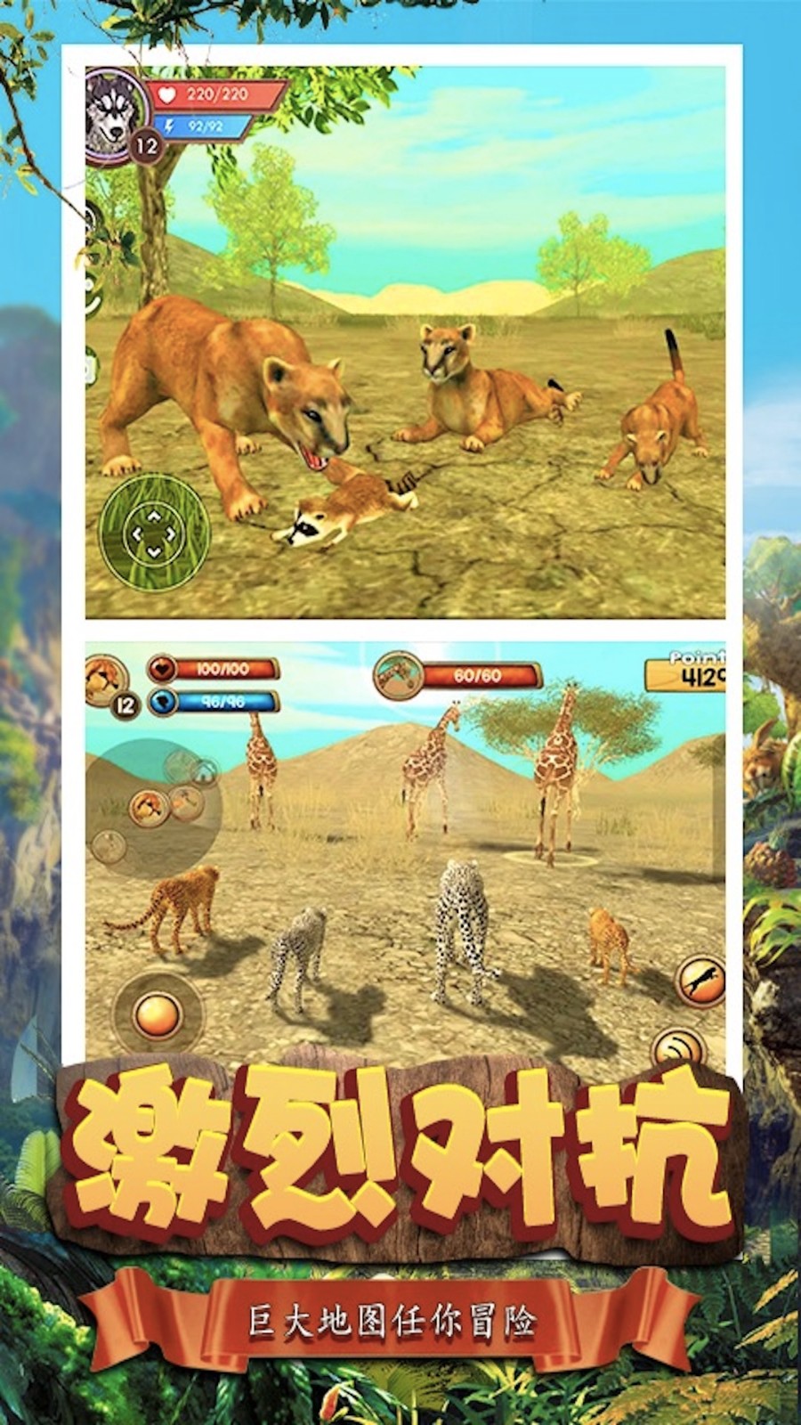 1.全新的残酷模拟猎豹生存的游戏,物竞天择,适者生存,感受完全不一样的生态。