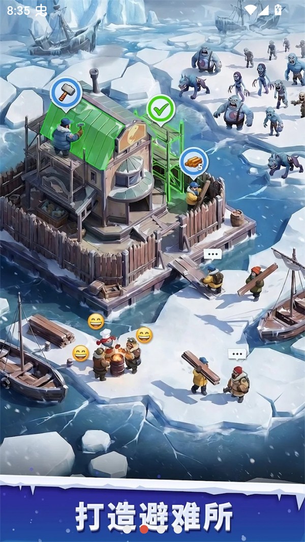 你管着那座叫“希望熔炉”的避难所,开局攥着一把有限的家当,得在浮冰上生生搭出一片能活人的地方。寒风暴雪是常态,墙外头还有成群的丧尸顶着雪往这边摸。首要任务是把温度保住——供暖设备一级一级往上顶,管子铺开、炉子烧旺,人才能缩在里头喘气。设施不能瞎摆,挨得太近容易出事故,离得太远资源调度跟不上。医疗站、粮仓、研究所,一样一样戳起来,熔炉就从几块铁皮变成一座轰隆隆转着的堡垒。