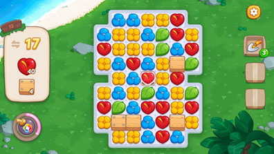 1、红色花朵*66,箱子*10、关卡步数:25步。