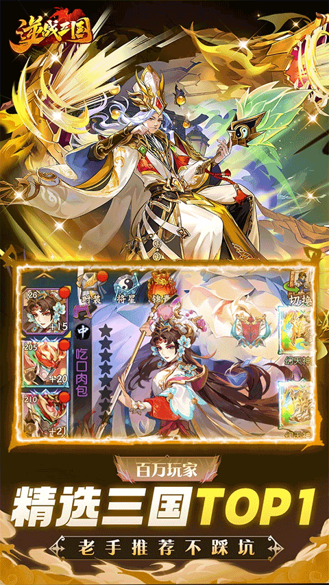 一款三国题材卡牌手游。游戏内加入三国时期各个经典的文臣武将,融入全新的故事情节,对三国故事进行全新的演绎。上线即送大量福利,助力玩家开启不一样的三国。玩家在游戏中可招募武将,体验名将簇拥的主公体验。快来提升武将实力,和他们一起并肩战斗吧!