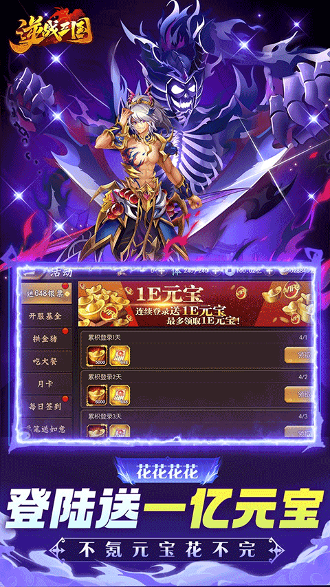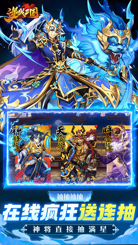 逆战三国是一款三国题材卡牌游戏,在逆战三国手游中,新手上线就送十连招募,完成任务还有更多连抽福利,另外还送千元真冲卡和VIP特权,每日登录还有200真充可以领。
