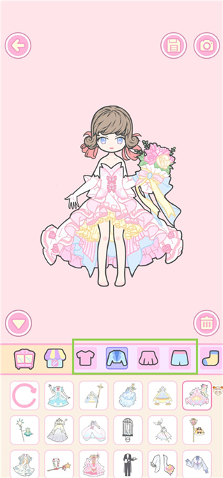 6、现在是为芭比挑选礼服的时刻了!你可以自由选择美丽的裙装,或者进行上衣和下衣的搭配,创作出最亮眼的穿搭。