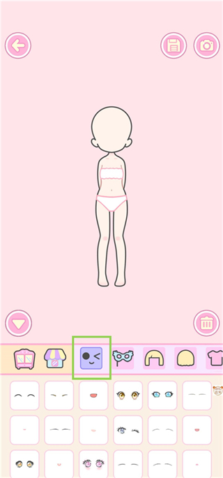 3、为芭比选择眼睛、嘴巴等五官,打造专属的面容。你可以根据自己的喜好,自由调整每个细节。