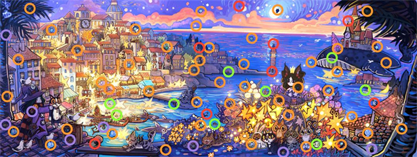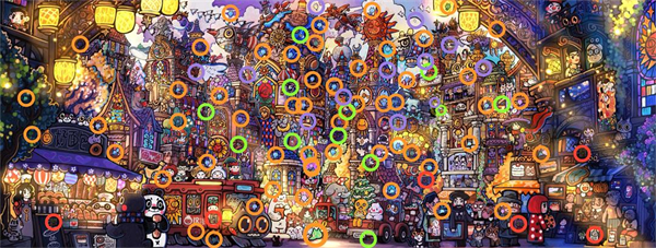 1、「故事模式」下的寻物,就是很简单的2D静态,找到画面中我们下方清单中的物品即可。