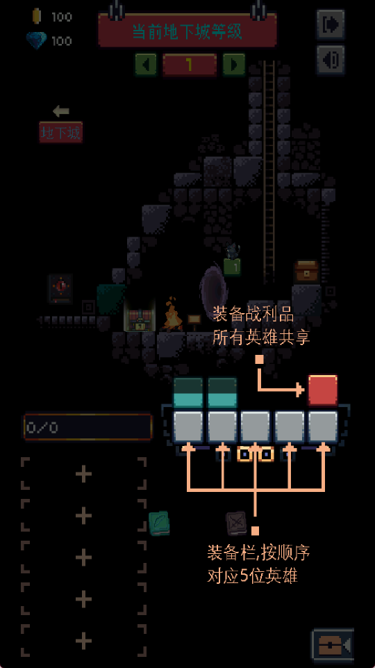 2、装备战利品所有英雄共享,装备栏按顺序对应5位英雄