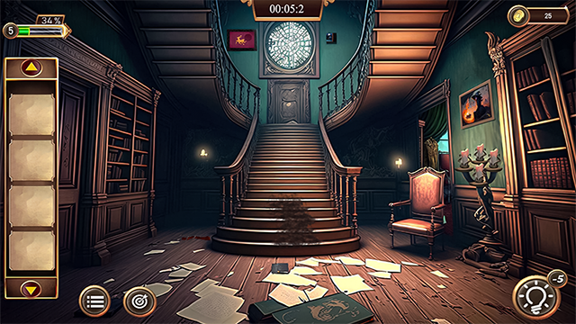 2、在客厅周围寻找并收集戳、钥匙和书籍。