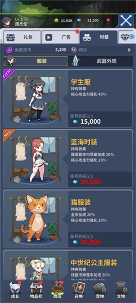 1、初期装备未齐,文物等级未满,且时装尚未解锁时,建议优先使用钻石抽取武器,获取金武或红武后再切换到抽取防具,直到防具达到一套金装为止,然后转为存钻购买时装。时装效果为全局有效,购买即生效,是提升战力的优先选项。