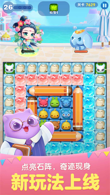 梦境之旅中,你会遇到各种风格百变的萌系宠物。它们不只是跟着卖萌,更是你过关的强大助力。有的宠物能帮忙消除一整片障碍,有的可以额外增加步数,有的会让特殊道具出现几率提高。