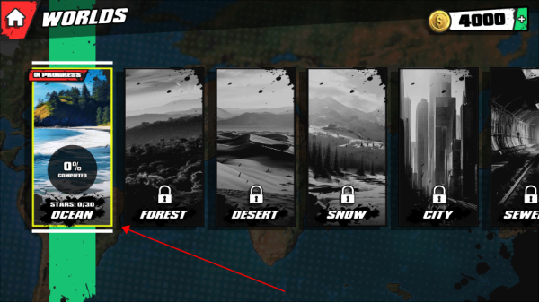 进入选择界面后,会看到多个风格迥异的场景供你挑选——炙热的沙漠、泥泞的丛林、冰封的雪山、废弃的矿区等等。每个场景都代表着一套完全不同的赛道风格和难度体系。