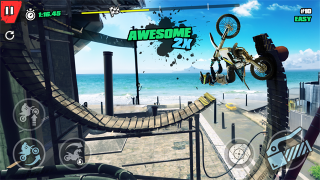 物理引擎经过精心调校,摩托车的重心转移、落地缓冲、过弯倾斜都相当逼真。但操控方式却非常简单——油门、刹车、倾斜,几个基础动作就能完成大部分操作。拟真但不复杂,硬核但不劝退。