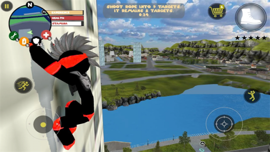 2、核心玩法充满爽感,火柴人能飞檐走壁穿梭于城市之间,带来灵动的移动体验。同时支持解锁各种武器装备、自由驾驶车辆,玩法自由度高。这些元素让玩家在城市中既能自由探索,又能随时投入战斗,乐趣多元