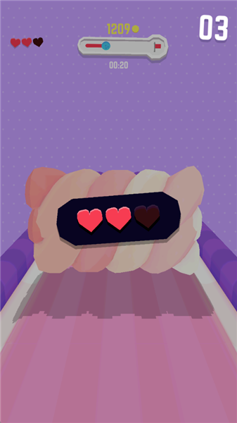 4、当我们撞击障碍时就会扣除一点生命,全部扣完则代表失败。