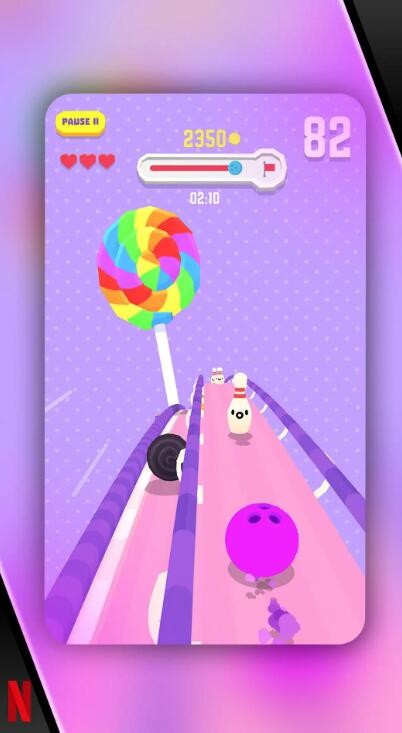 2、多元道具加持,轻松攻克高难关卡:内置多款功能性道具,面对密集障碍物、难缠目标群时,合理使用加速道具实现极速冲刺,借助分裂道具分裂出多个保龄球扩大打击范围,搭配强力撞击道具突破厚重障碍,灵活搭配使用道具,大幅提升通关效率,轻松化解各类闯关难题。
