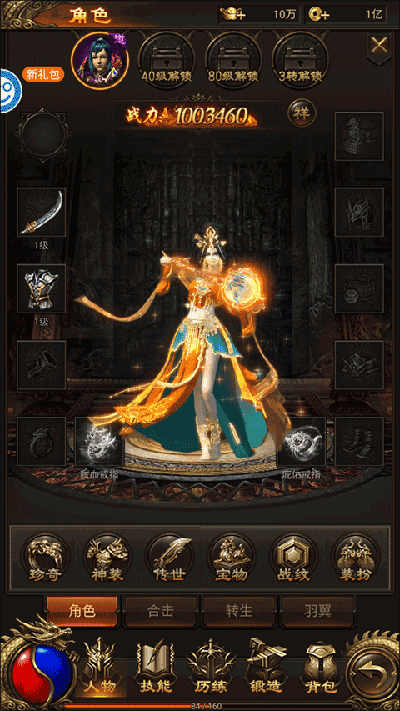 创建角色,福利直接塞满背包。VIP15到手,尊贵特权提前享受;元宝一百万,花不完根本花不完;金币一亿,升级技能、强化装备、锻造神兵,随便花;绝版时装套穿上,走在大街上,回头率百分百。创角福利,上线即送,开局直接起飞。