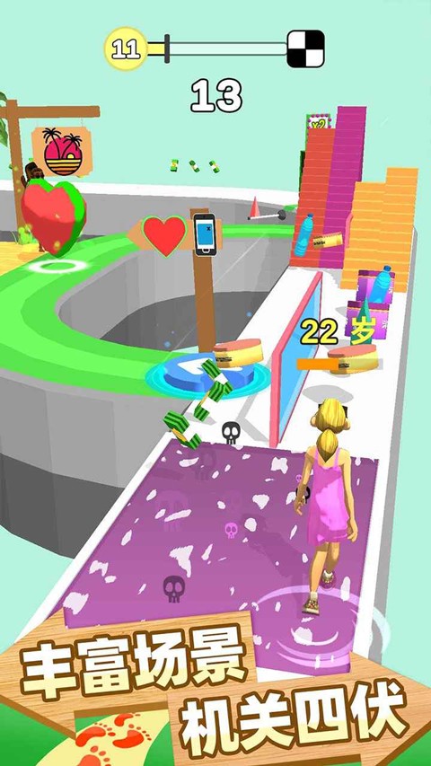 4、 岁月陷阱:途中隐藏着加速老去的危险陷阱,如不良习惯象征的障碍物,稍有不慎便会让角色提前步入暮年。