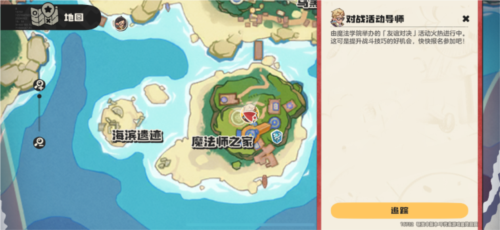 1.在洛克王国世界游戏初期,去往地图下方的“魔法师之家”,找到对战活动导师,