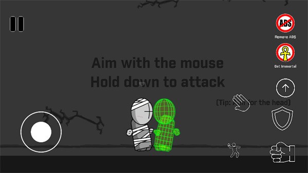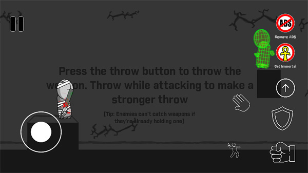 3、右手的手掌图标可以控制人物拾取道具,小人图标可以控制角色投掷武器,面对一些远程敌人时会需要使用这个技巧。
