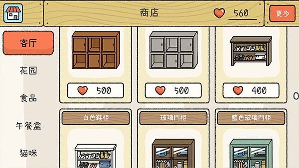 手绘画风的游戏看上去很温馨,而家园的风格就要看你自己的喜好和选择,所有的家具都是需要自己购买的,等拥有一定数量的爱心之后可以解锁新的场景,例如花园卧室等等。在游戏中可以撸猫,还可以用相机记录下瞬间拍照存到相册里面。和你的男朋友一起或者是室友一起生活,可以准备好吃的便当,自己动手制作便当以及庭院的装修。解锁花园之后会有六大景观可以供你看景色,花园中也可以添加一些家具,方便你累的时候去休息,总之是一款非常休闲好玩的养成游戏。