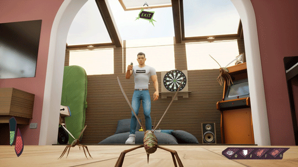 他拍你,你飞到衣柜后面,他够不着;他追你,你飞到天花板角落,他看不到;他堵你,你飞到窗户旁边,从缝隙钻出去。躲在家具后面,反弹墙壁改变方向,从门缝溜出去,从窗缝飞进来。环境元素可以为你提供掩护和优势。例如,你可以躲在家具后面或利用墙壁反弹来躲避人类的攻击。房间不大,但能躲的地方不少。