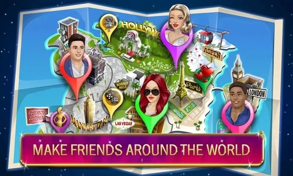 2、解锁城市:通过完成游戏任务、提升明星等级取得进展,解锁好莱坞、比佛利山庄、曼哈顿、拉斯维加斯等令人惊叹的新地点,解锁更多全新游戏功能,自由闲逛打卡。