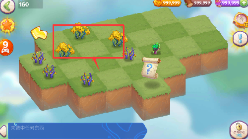 1、进入游戏将红色框框里的植物往上移动进行合并。