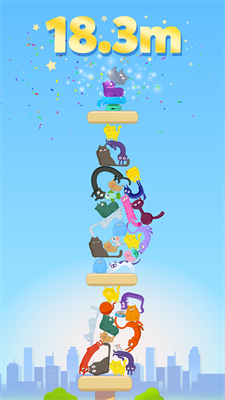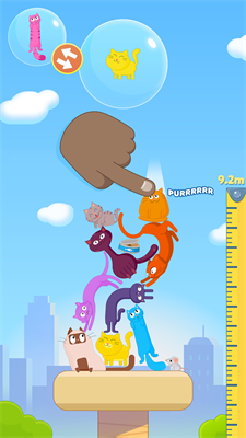 1.指间灵活操作,控制小猫的移动,将小猫们堆叠在一起,构成一个稳定的形状,不断获得更高的分数。