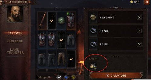 3、装备都不要扔,不用的白、蓝装去铁匠铺分解,得到的材料可以用来强化装备,需求量很大;