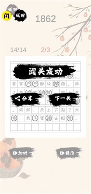 2.每个关卡的挑战时间都是有限的,你可以点击下方的加时和提示,帮助你完成挑战,获得丰厚的奖励。